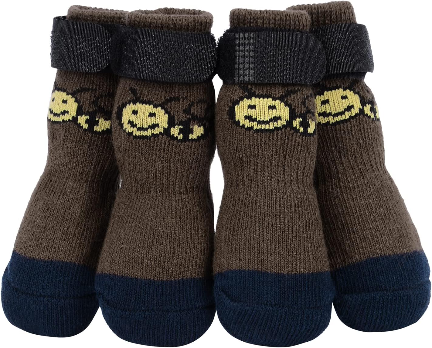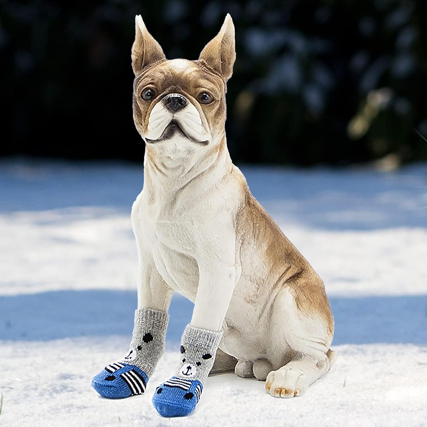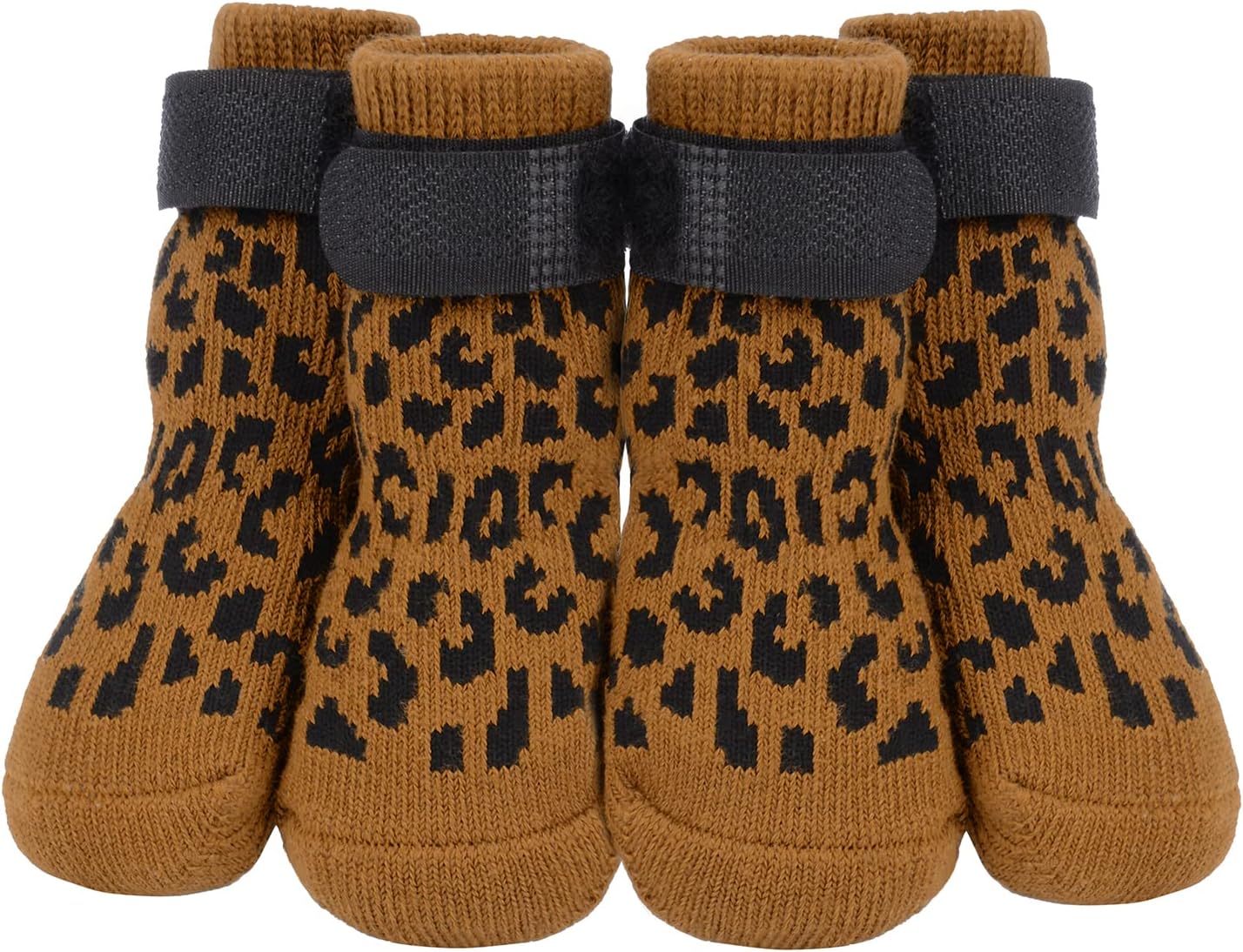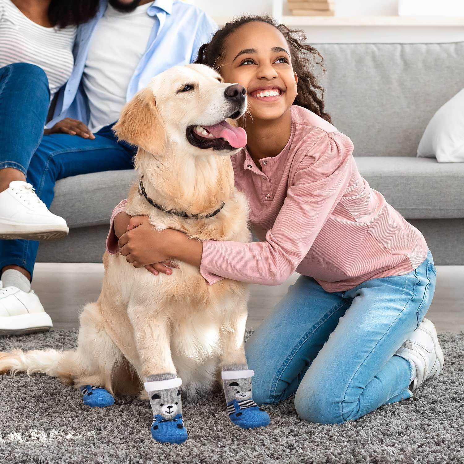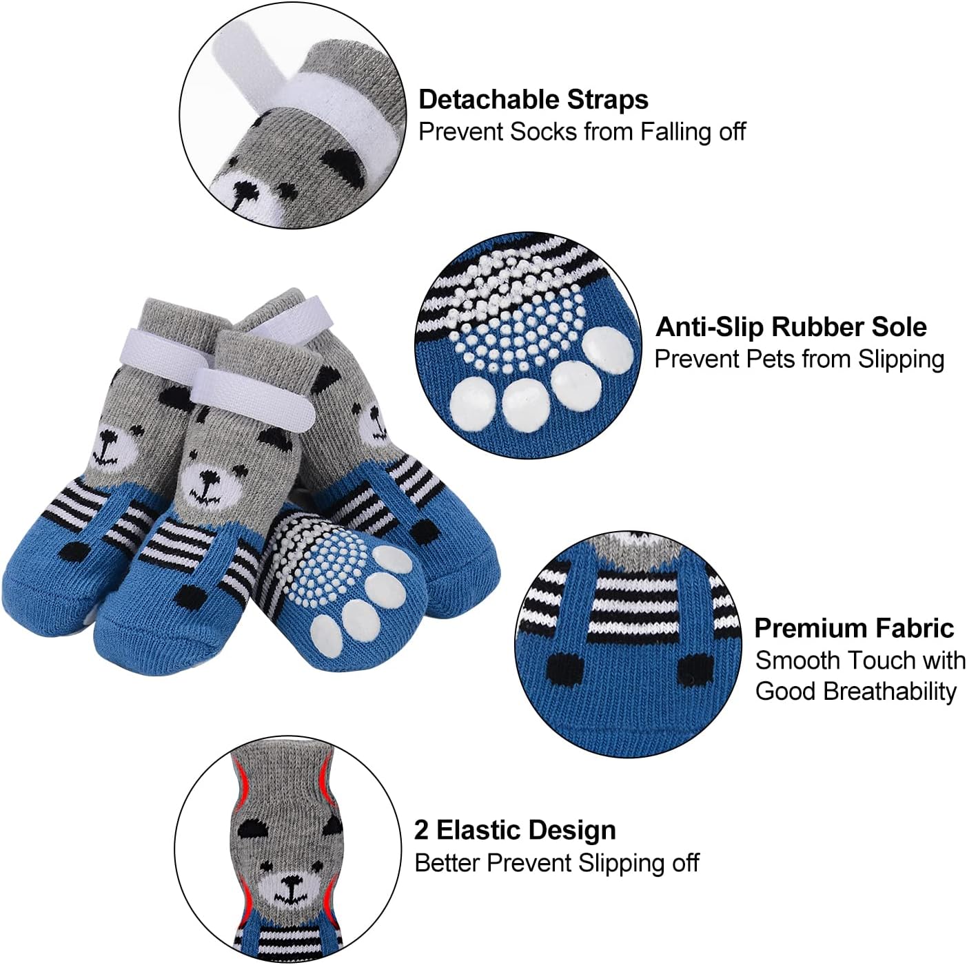 PETLOFT Anti-Slip Dog Socks, 4pcs Indoor Non-Skid Dog Socks with Adjustable Detachable Fastener Strap for Small Medium Dogs Cats Puppies Older Pets (Grey Paw, XS)