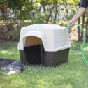 - Durable Protection: This Dog house's all plastic construction and rear air ventilations system fleas and provides long lasting protection; Also useful for outdoor cats and strays; For pets between 25 to 50 pounds