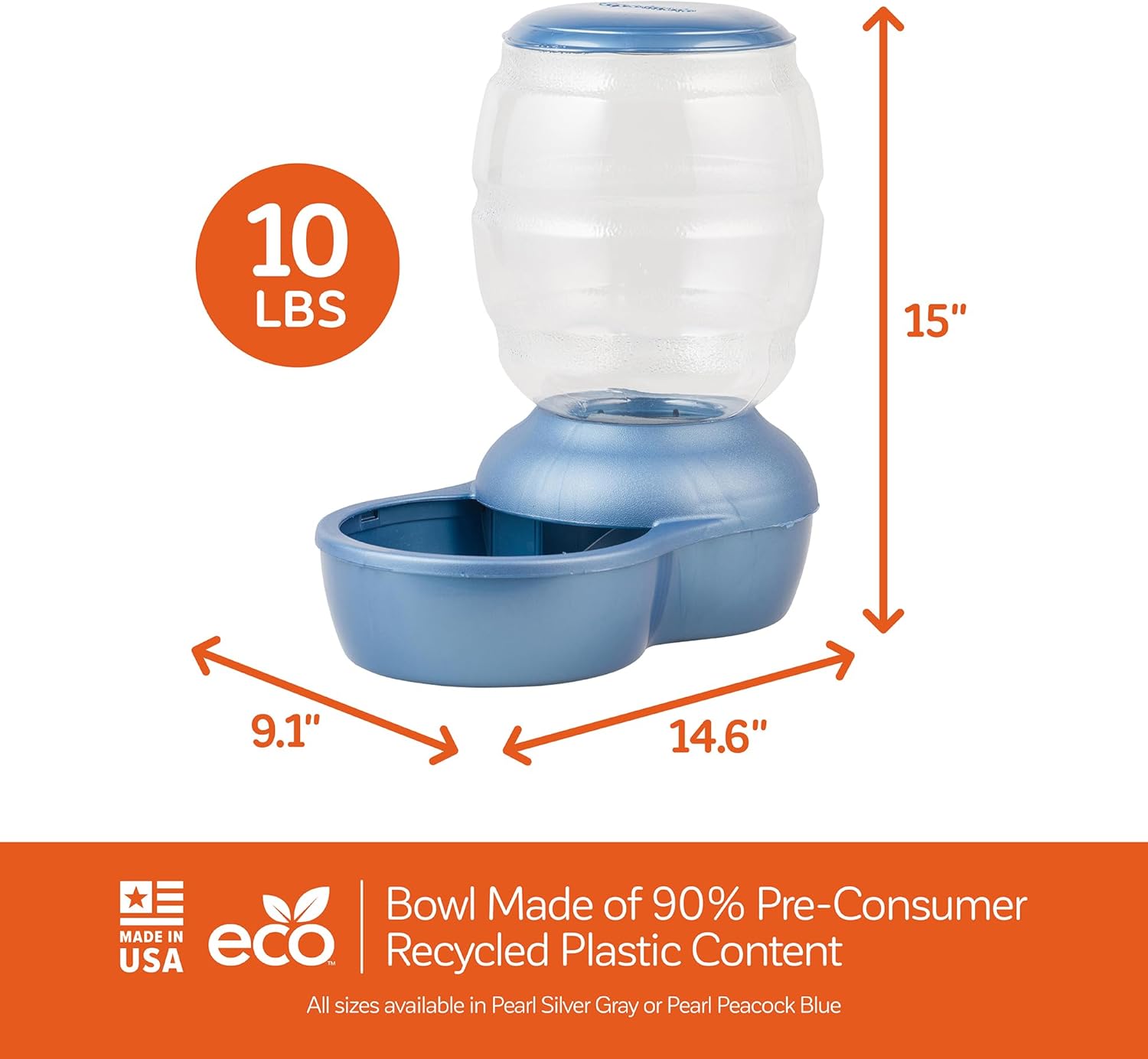 The Petmate Replendish Feeder provides pets with a delicious supply of dry food with less refills required for pet parents. For pet parents with busy lifestyles, the Replendish feeder ensures pets have easy access to an extended supply of fresh food. The wide-mouth food dish is spill-resistant to keep floors clean as pets eat. Pet parents can scoop or pour food directly into Replendish top load feeder by removing the easy-snap lid, making refills even more convenient. The Petmate Replendish Feeder is available in four sizes for pets large and small, and the base and bottle screw apart for convenient cleaning. With a variety of colors to choose from, the Petmate Replendish Gravity Feeder makes a charming addition to any room of the home.