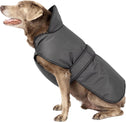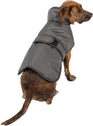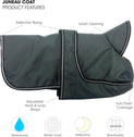 The Juneau Coat in Charcoal Grey is a heavyweight winter dog coat, for harsh weather conditions. Its ultra-durable, windproof, and waterproof design offers full chest coverage, protecting dogs from rain, snow, wind, and extreme cold. The dog jacket features reflective stitching along the seams, collar, and belly strap for enhanced visibility during low-light walks. Its triple-layer construction combines a breathable high-denier nylon shell with a poly/cotton liner, ensuring warmth without overheating. Convenient hook-and-loop strapping and a leash opening make it easy to use, while being machine washable for easy care. Includes ID label and rear optional elastic leg straps.