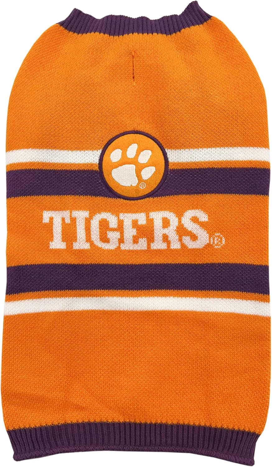 - WARM AND COZY DOG SWEATER FOR THE FOUR-LEGGED FAN - Love your dog? Love your college sports team? WARM KNIT PET SWEATER Features your favorite NCAA TEAM's NAME & LOGO embroidered in vibrant colors! The warm knit material is great for the cold winter & the look is perfect so that your dog can stand-out at any occasion! Be prepared to receive many compliments.