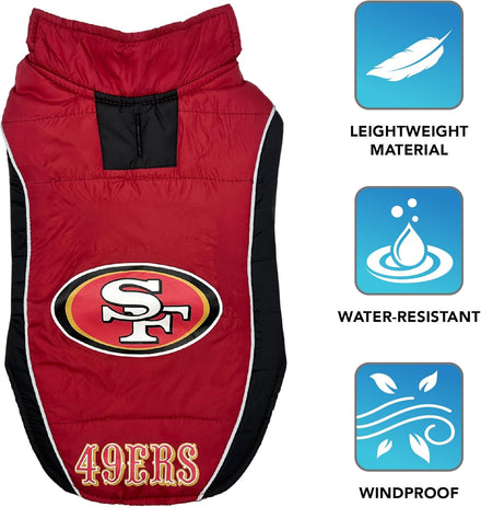 - BEST of 2022 FASHION PET COAT - When you're looking through thousands of Dog coats and Dog vests on Amazon, it is hard to decide which coat would suit your pet best! Pets First has made it easy to CHOOSE THE NICEST & WARMEST DOG JACKET with this innovative & sporty NFL Puffer Vest