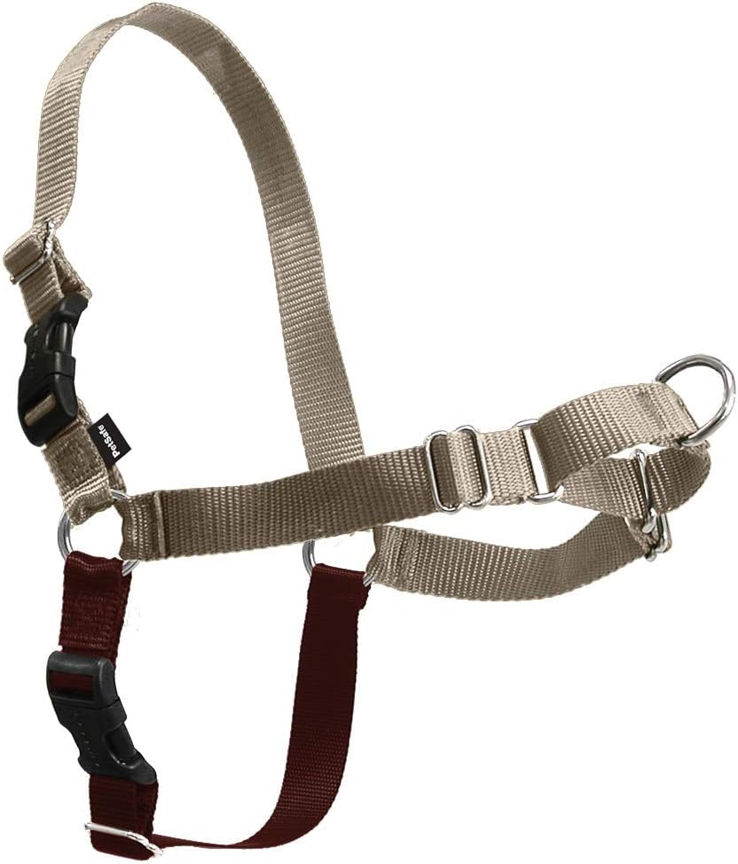 Product Description The Easy Walk Harness is a no-pull dog harness that helps stop pulling and teaches him better leash manners. The Easy Walk Harness has been loved and trusted by millions of pet parents and trainers since 2004 to help improve walks around the world. Since this harness rests across your dogs chest, you wont have to worry about it putting pressure on your dogs neck like when he wears a standard collar. The patented martingale loop on the front of the harness makes this harness great for dogs who pull. As your dog pulls or lunges, the specially designed loop tightens, putting gradual pressure on your dogs shoulders, allowing you to help redirect their focus. The leash attaches to the front of the harness so you can help gently guide your dog. Your dog will be cool and comfortable while wearing his harness. The Easy Walk Harness has less coverage than other harnesses making it lightweight and very breathable. The harness is also incredibly durable and ready for every walk or hike. The Easy Walk Harness is quick and easy to fit. Weve made the belly strap a different color from the rest of the harness, so youll be able to easily put on your dogs harness for your next walk together. You can purchase the Easy Walk Harness risk-free because whether the harness isnt the right size or your dog mistakes the harness for a chew toy, our Customer Care team is happy to assist you with a new size or replacement. You and your dog will soon enjoy pull-free walks together. Trust PetSafe to help keep your pet healthy, safe and happy. Brand Story By PetSafe