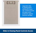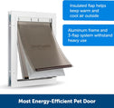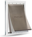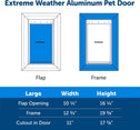 Experience the convenience of the extreme weather dog door, designed to let your pet in and out without you having to open the door each time. This large extreme weather dog door model ensures your home's energy efficiency is not compromised, making it a must-have for pet owners. The extreme weather doggy door stands out with its unique 3-flap system, designed to protect your home in all weather conditions. This extreme dog door not only maintains a comfortable indoor temperature but also helps reduce energy costs, allowing your pet to roam freely without worry. Built to last, this cold weather dog door features a durable metal frame and reinforced aluminum corners. These doors are designed to handle the demands of active and multi-pet households, ensuring they can stand up to years of use. Manage your pet's outdoor activities with the slide-in closing panel of these doggie doors. The extreme weather dog door not only allows you to control your pet's access to the outdoors but also helps keep stray animals out. Installation of the large dog door extreme weather model is a breeze, fitting easily into various door types. This extreme weather doggy door is compatible with door extension PAC54-16967, allowing you to maintain the comfort and energy efficiency of your home while giving your pet the freedom they need.
