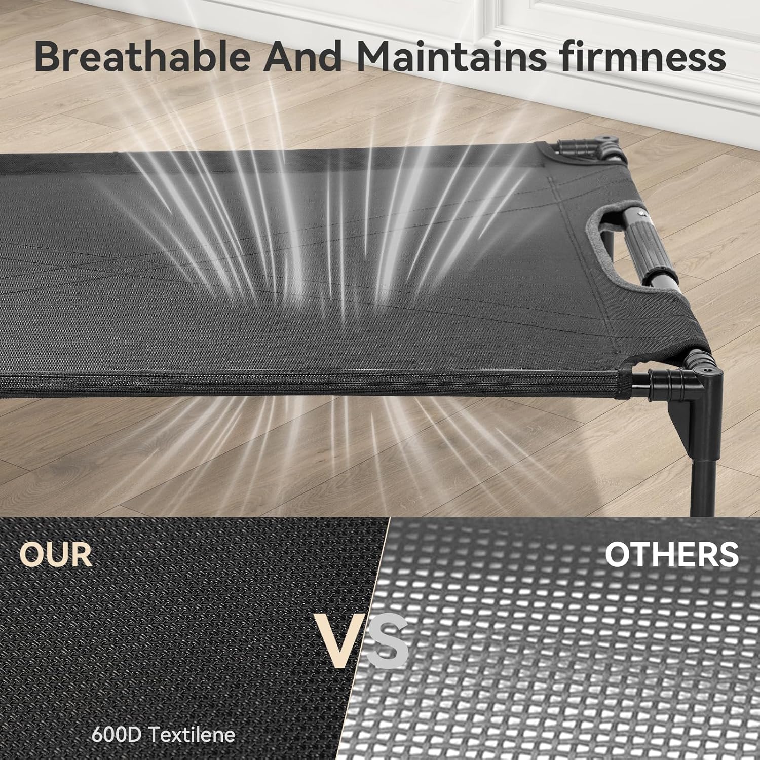 - 【Durable & Washable Material】: Constructed with a durable Teslin fabric supported by robust nylon straps, our raised dog bed is designed for longevity. It offers excellent ventilation, facilitating easy maintenance while resisting wear from sagging and chewing, ensuring a clean, comfortable bed for your dog.