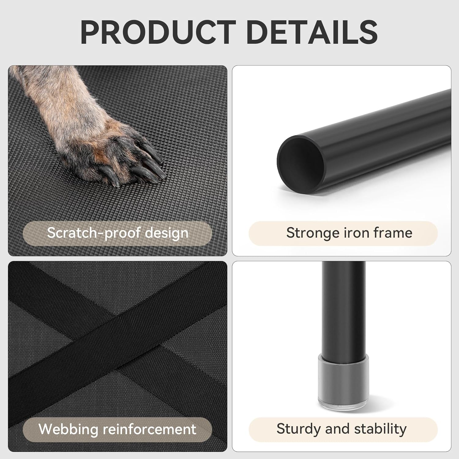 - 【Elevated for Optimal Comfort】: Promote better health for your furry friend with our elevated dog bed, standing 9 inches off the ground for enhanced airflow. Perfect for pets up to 80 lbs, the 48" bed size offers an easy-to-clean space beneath and makes your pet feel secure, boosting their sense of well-being.