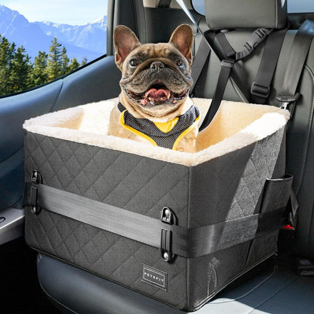 - [Cozy Puppy Car Seat] The small dog booster car seat is a perfect blend of toughness and softness, it's crafted with a durable Oxford fabric exterior, lined with soft Berber fleece. The all-around is stuffed with a gentle sponge filling. This addition not only enhances safety by providing a buffer during bumps but also makes every nook a cozy corner for snuggling