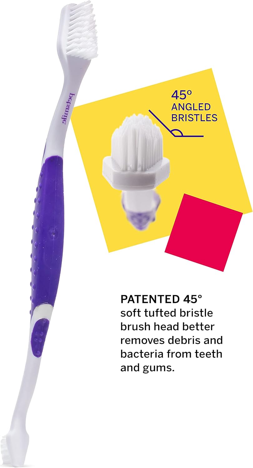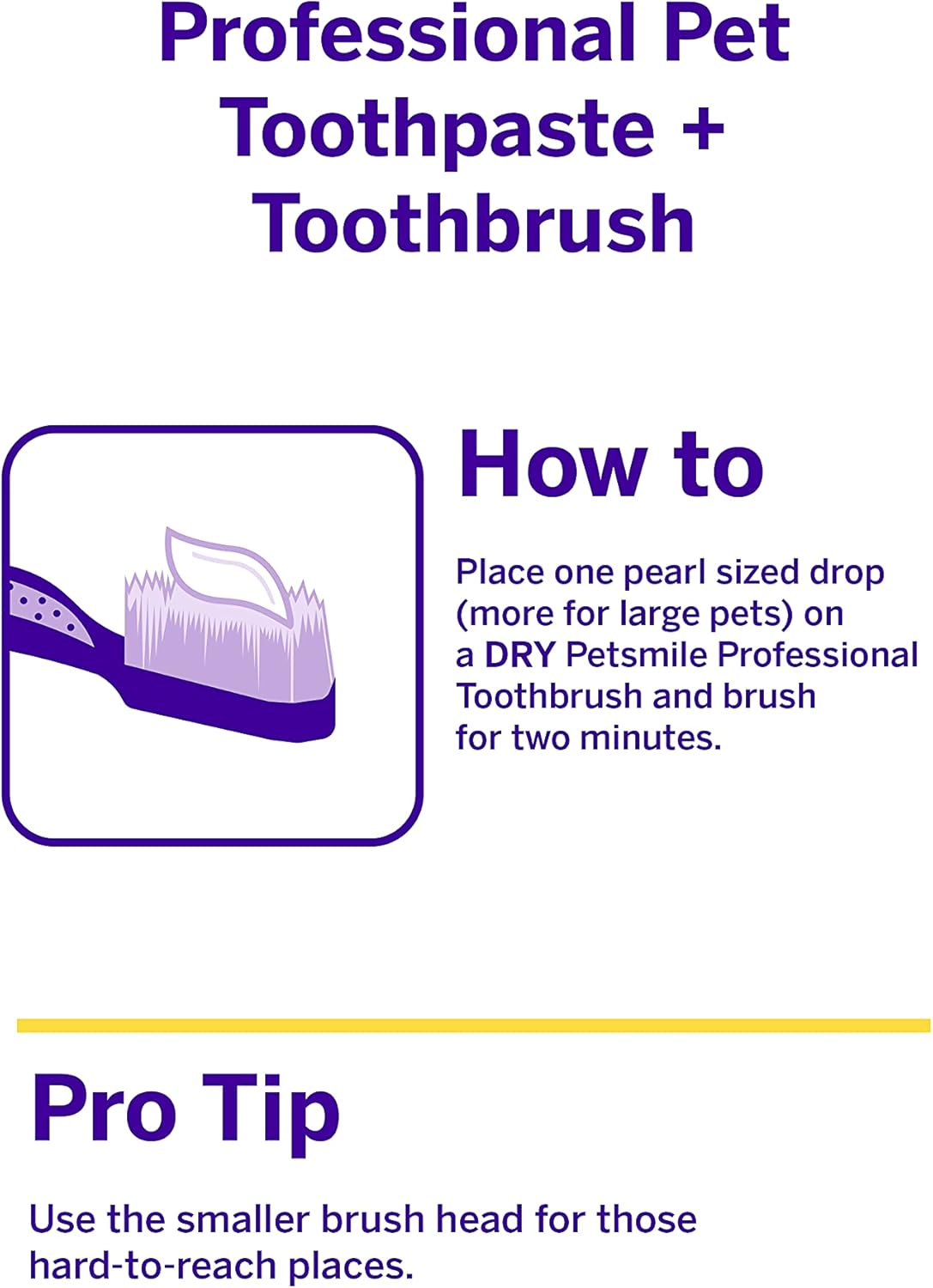 - Professional Dual-Ended Pet Toothbrush - Petsmile's cat and dog toothbrush features a patented 45° brush head that effectively cleans below the gum line where plaque and bacteria accumulate while polishing and cleaning the tooth's enamel.