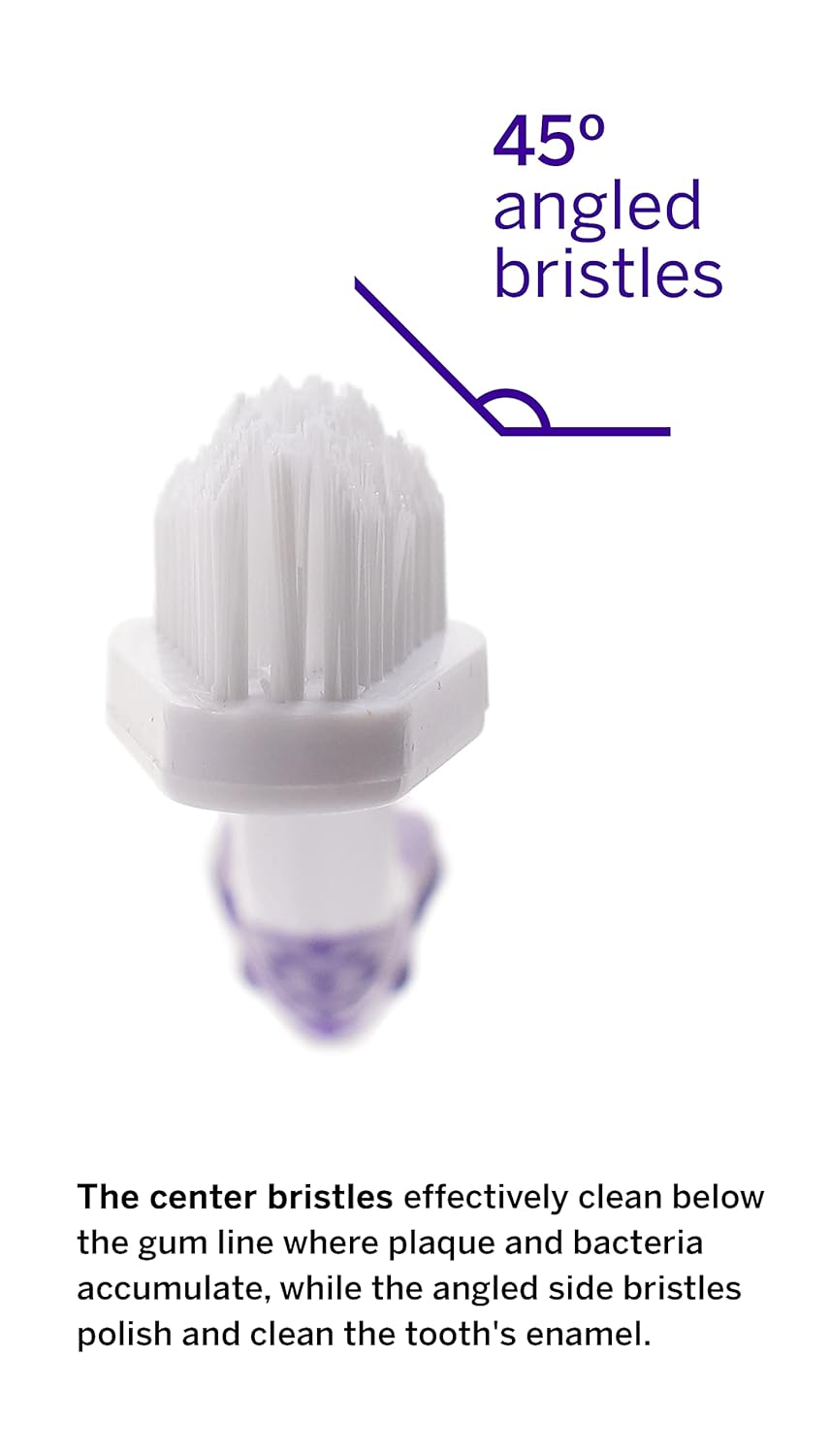 Effectively Clean & Polish Your Pets Teeth - Petsmile's dog toothbrush features a patented 45° brush head that removes debris & bacteria from your pets teeth & gums, center bristles that clean below the gum line where plaque & bacteria accumulate & angled bristles that polish & clean the tooth's enamel.