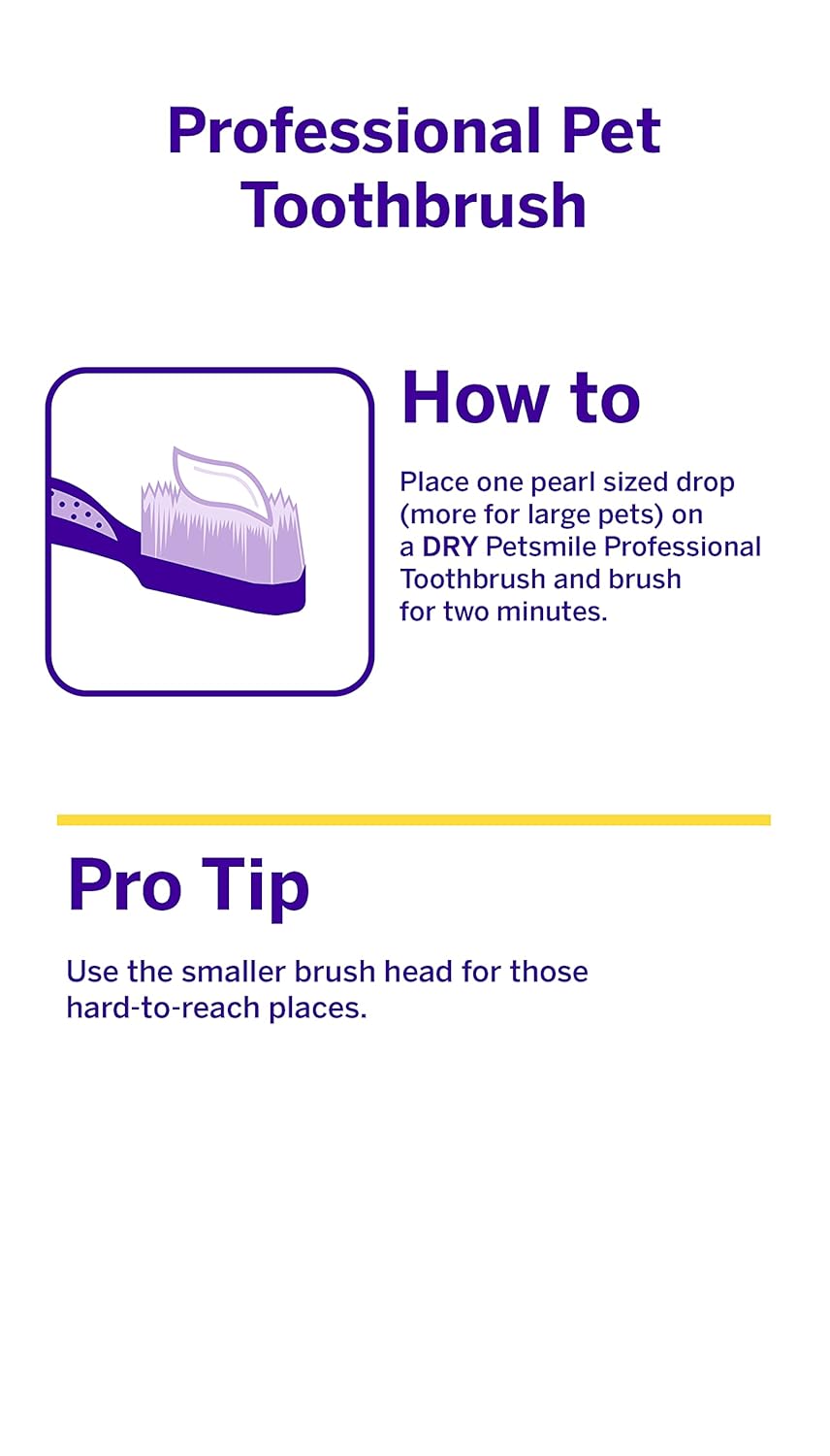 Significantly Improve Dental Care - Regularly brushing your pet’s teeth with a Petsmile Professional Toothbrush will significantly improve the oral health of your dogs and cats. It’s been proven that good oral health will help prevent heart, liver, and kidney diseases. Healthy teeth make for a happy pet!