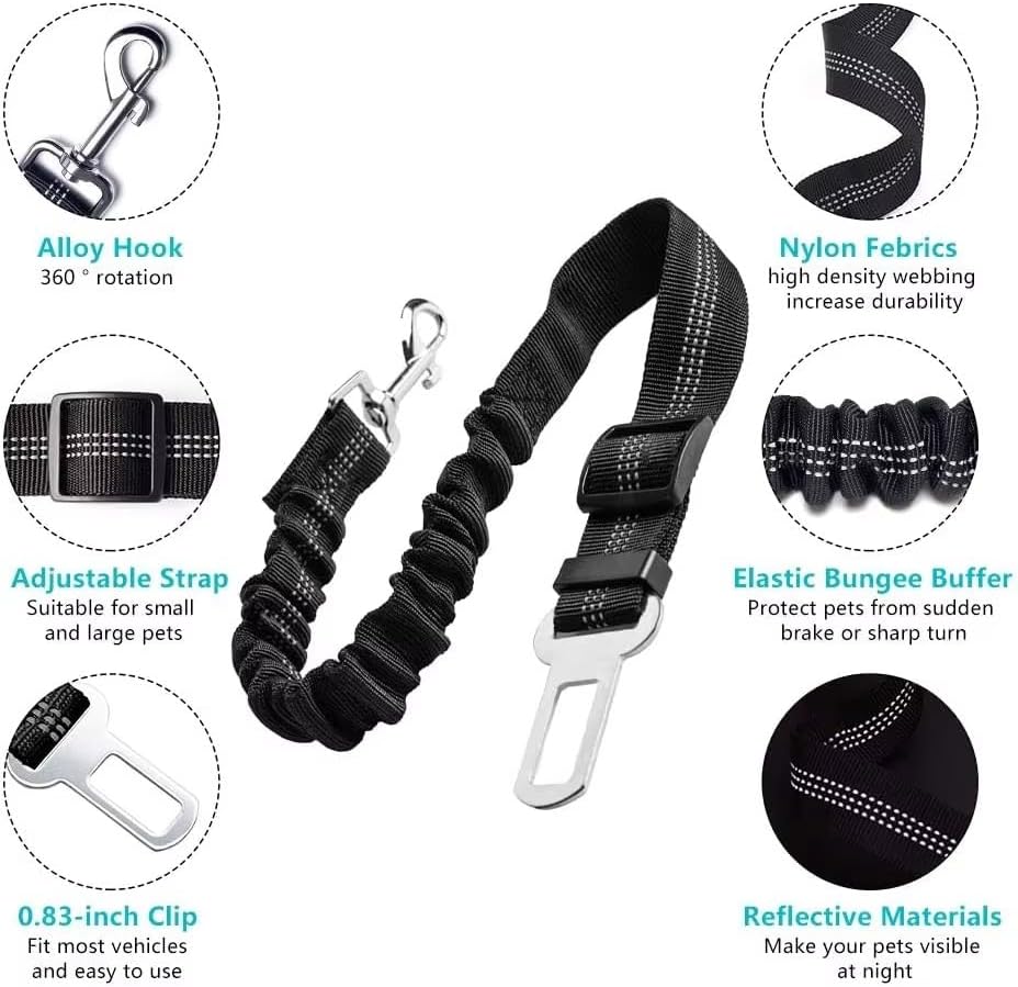 Dog Seat Belt Adjustable Dog Car Seatbelts for Vehicle Nylon Pet Safety Seat Belt with Elastic Bungee Buffer Reflective & Durable Car Harness for Dogs
