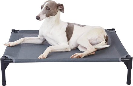 - Cooling Dog Bed: Pettycare Cooling Elevated Dog Bed Size: 42"x30"x7" (107x76x18 cm). The 7" off-the-ground (9 inches for X-Large) design promotes increased airflow on all sides of the raised dog bed, which helps keep your pet cool and creates low-impact areas to pressure points and joints, especially on rainy or hot days