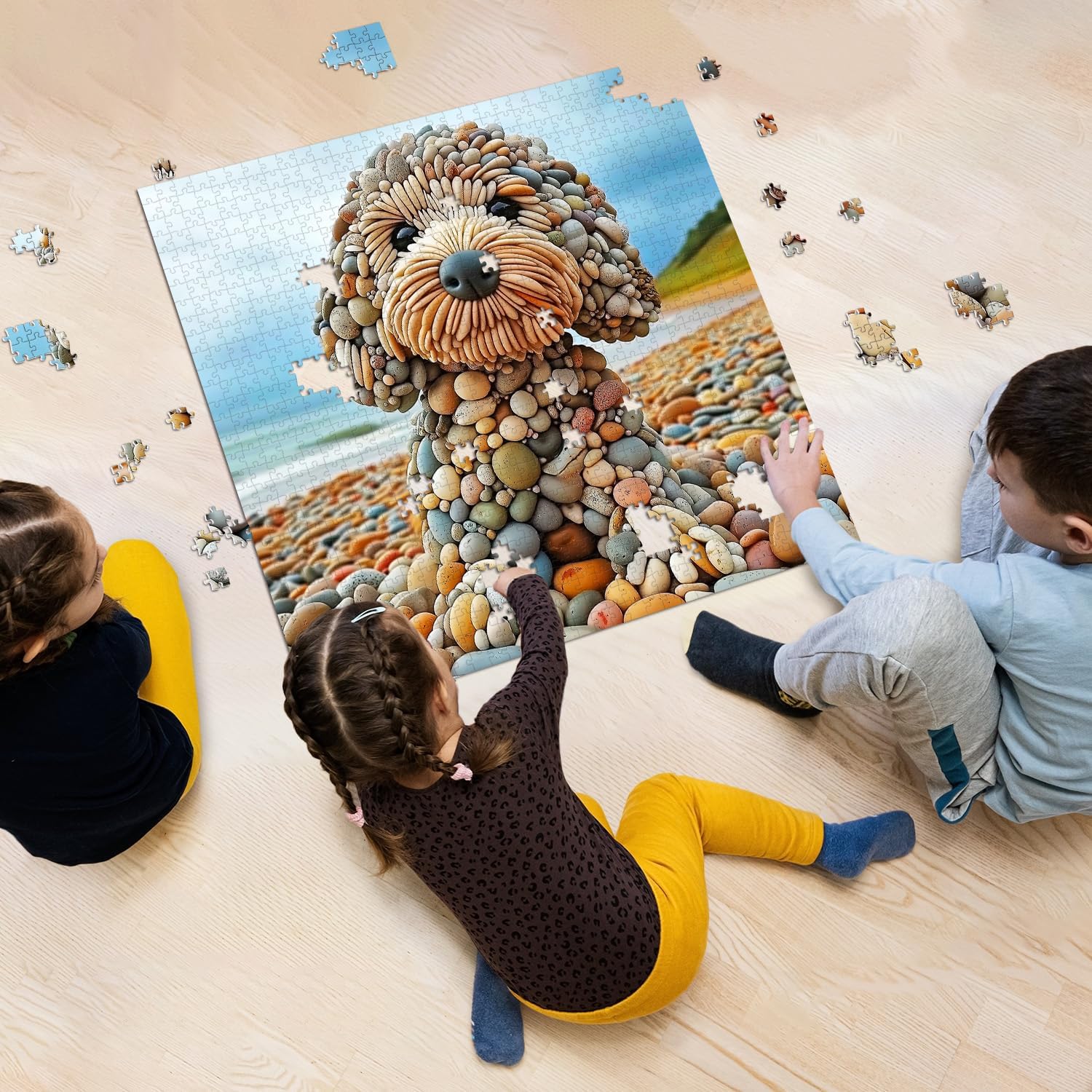 PICKFORU Funny Dog Jigsaw Puzzles 1000 Pieces for Adults, Summer Beach Guardian Dog Puzzle Cute, Interesting Seaside Stone Puppy Theme as Home Decor