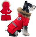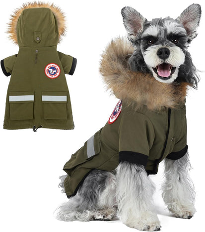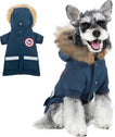 HOODED & ADJUSTABLE: The soft faux fur hood protects your dog's neck and head in cold weather. The elastic band at the bottom and the drawstring at the tail can make the coat fit your dog better and effectively protect it from wind and snow, keeping your dog warmer.