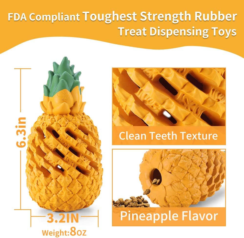 - SAFE UNIQUE HOLLOW PINEAPPLE SHAPE&FLAVOR DESIGN: made from nature rubber non-toxic with seductive pineapple flavored, appeal dog to chew and play, toy's raised textured well clean your dog's teeth,stimulate gums and reduce tartar