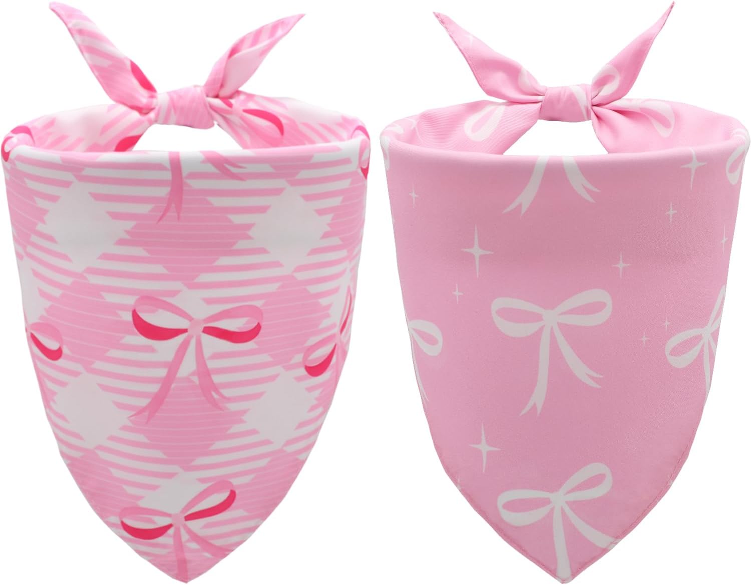 - [PREMIUM QUALITY MATERIAL]:These pink bow dog bandanas are made of double-layer,high-quality polyester material,which is soft and comfortable to touch,lightweight and breathable for your pets to wear.