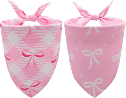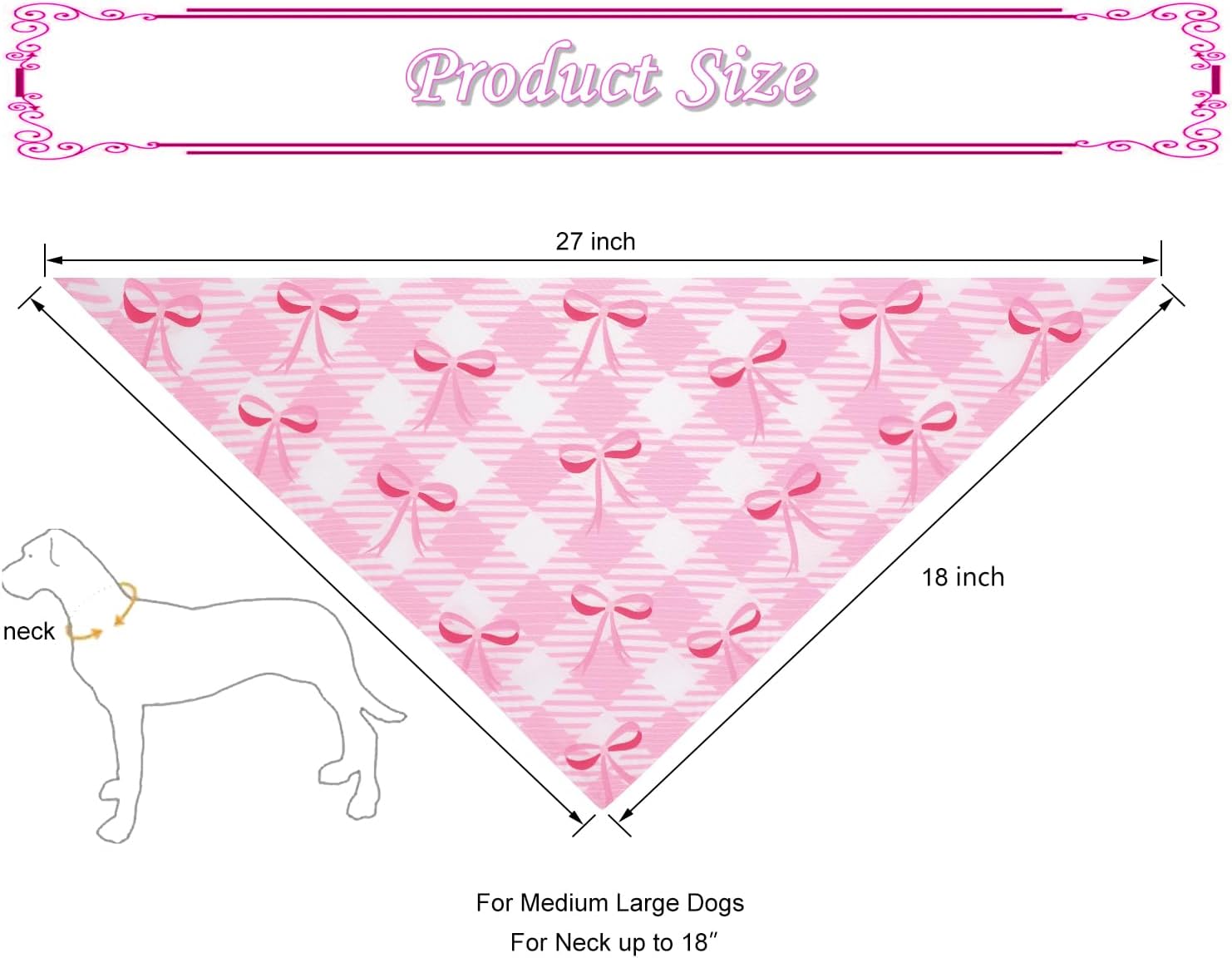 - [PATTERN DESIGN]:These spring summer dog bandanas are designed with pink gingham,pink bowknot,which can be folded and adjusted,eye-catching and exquisite,great accessories for your pets.