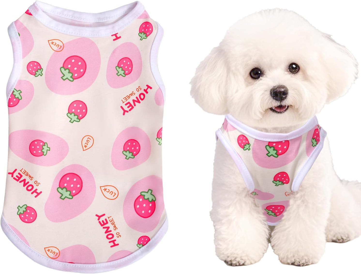 - Delicate Design: this girl dog clothes for small dogs is mainly in pink color, printed with pink strawberries and “HONEY” and other sweet patterns and letters, wearing it your dog more cute and attractive