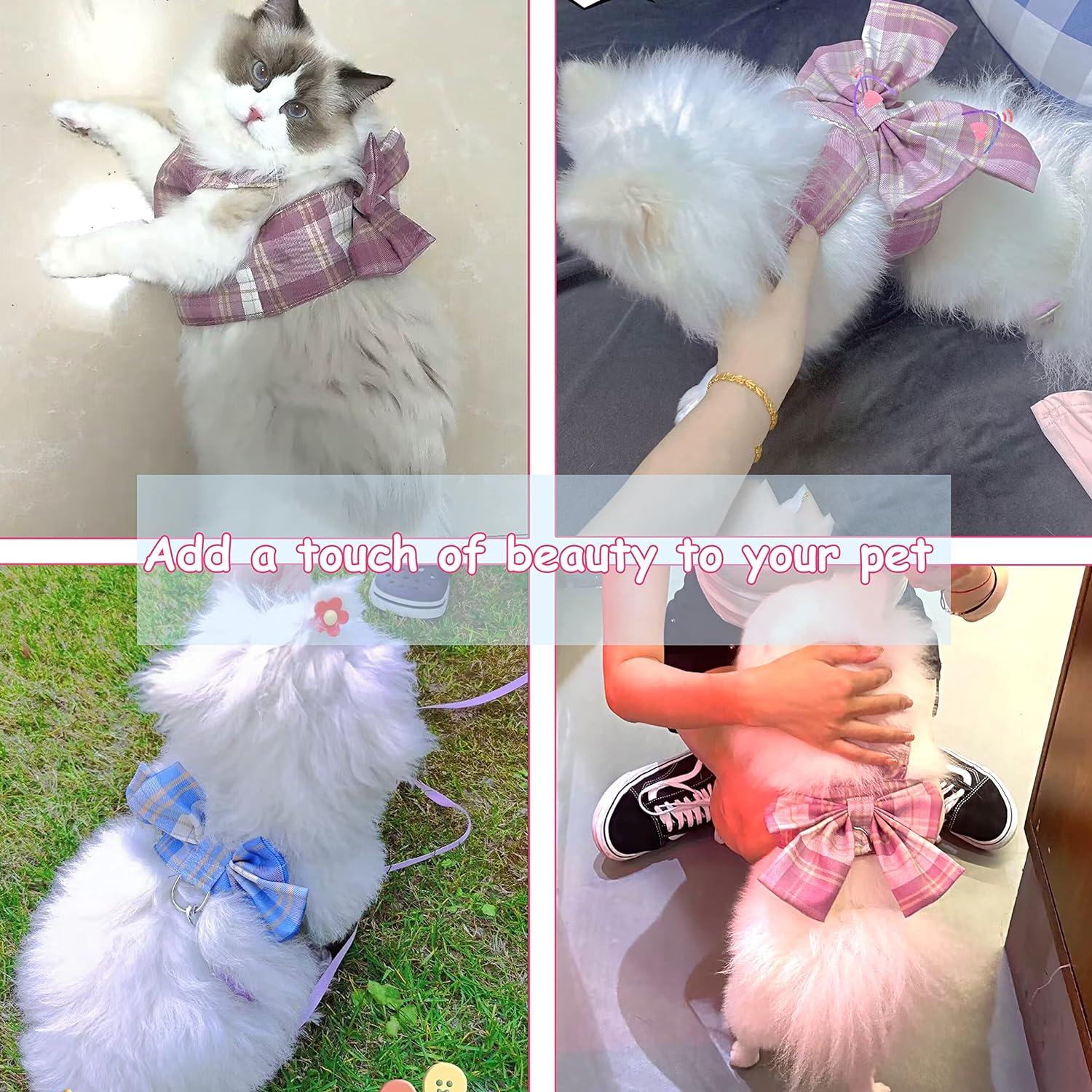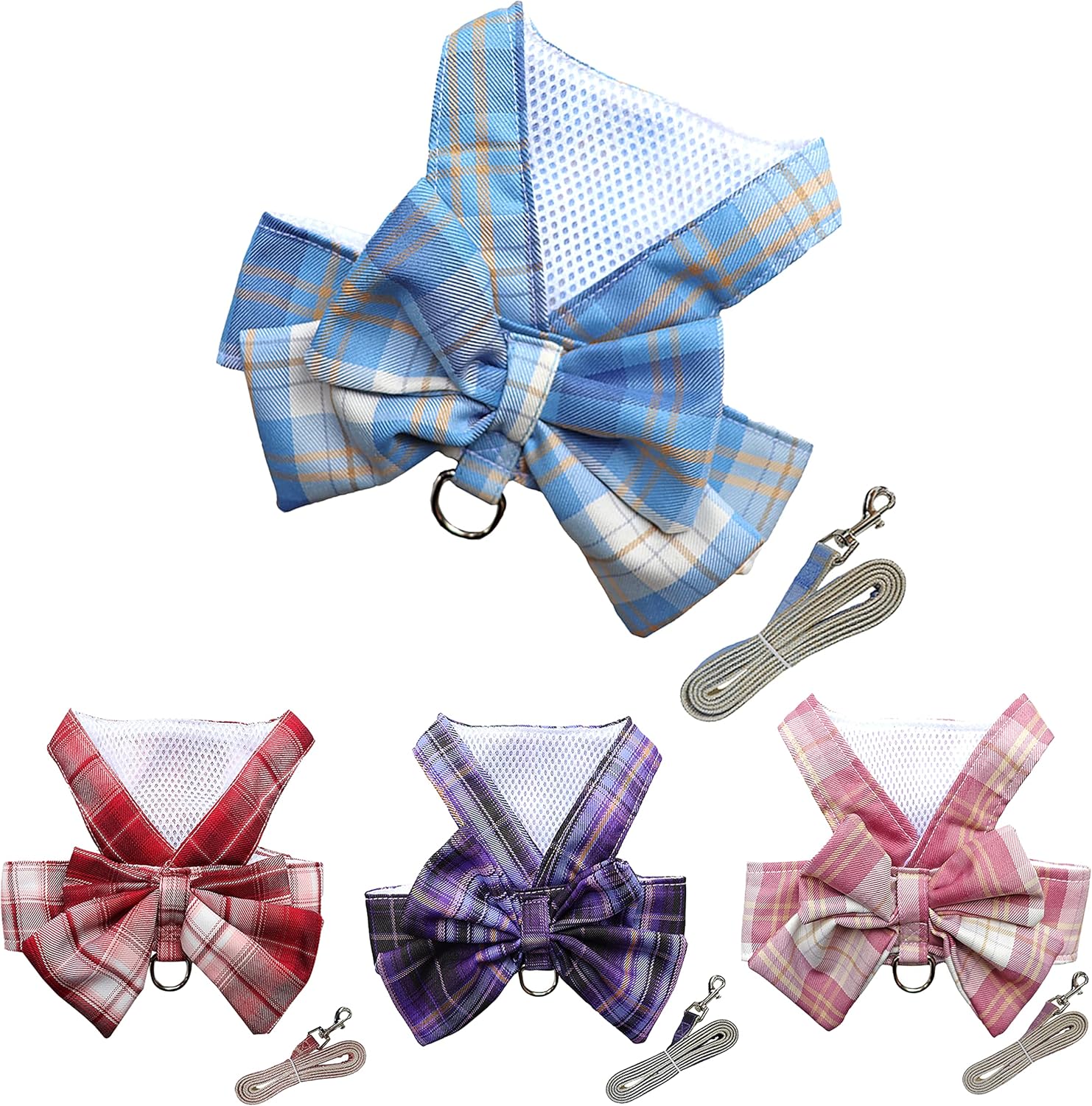 Plaid Dog Dress Bow Tie Harness Leash Set,Dog Clothes Harness Dress with Leash Ring for Small Dogs Girl, Puppy Princess Rabbit Clothes Chihuahua Yorkies Pet Outfits (Pink, X-Small)