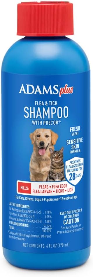 - KILLS LICE - Lice travel on pets, too, and Adams Plus Flea & Tick Shampoo With Precor kills lice on contact.