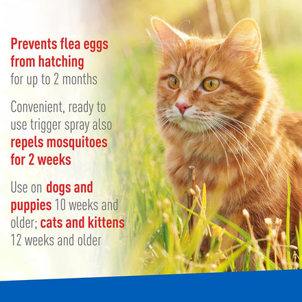 - CONVENIENT TO USE - For use on canine companions 10 weeks and older and feline friends 12 weeks and older. This spray is designed with a convenient trigger for easy and even application.
