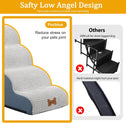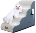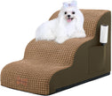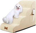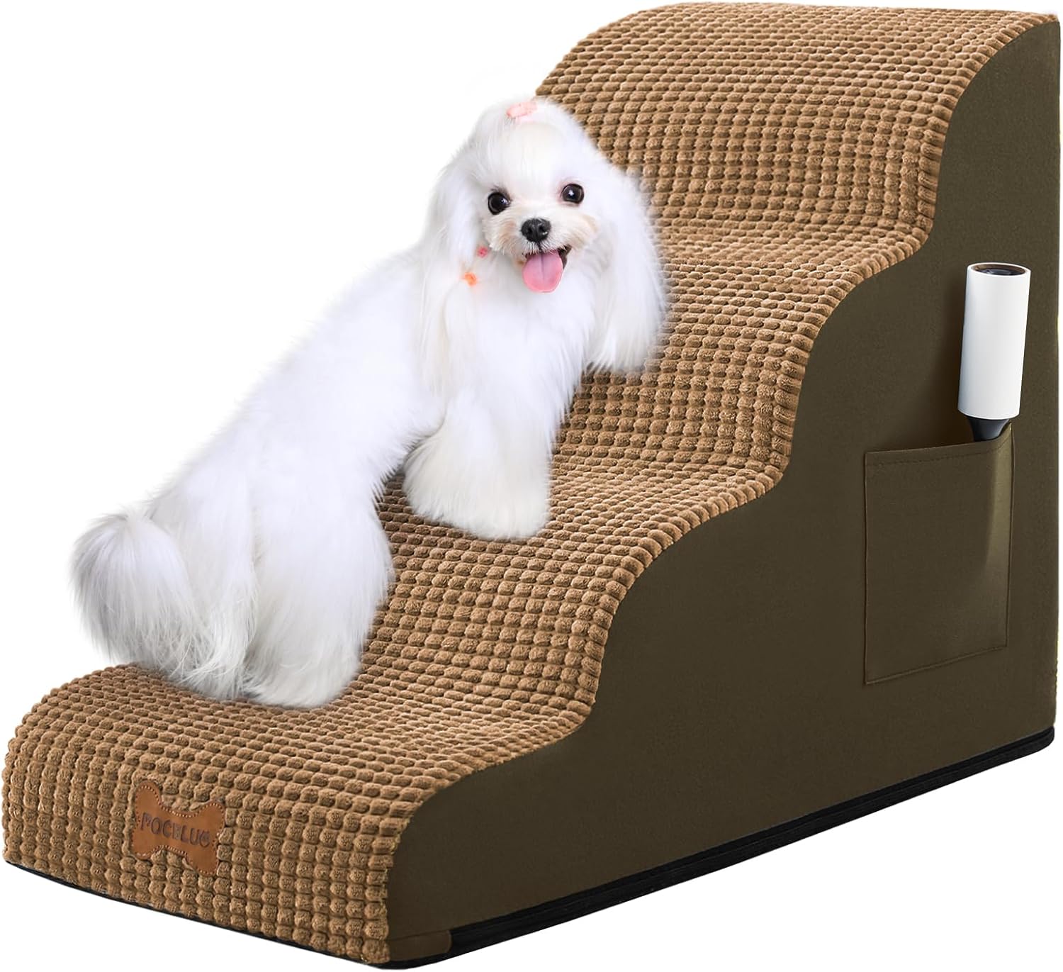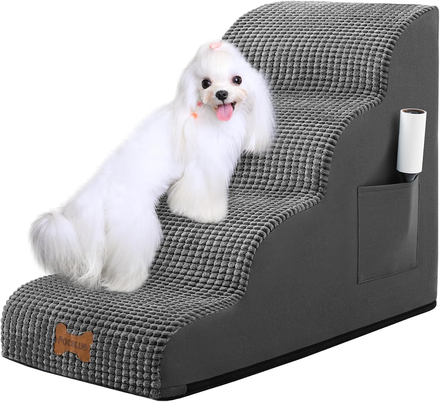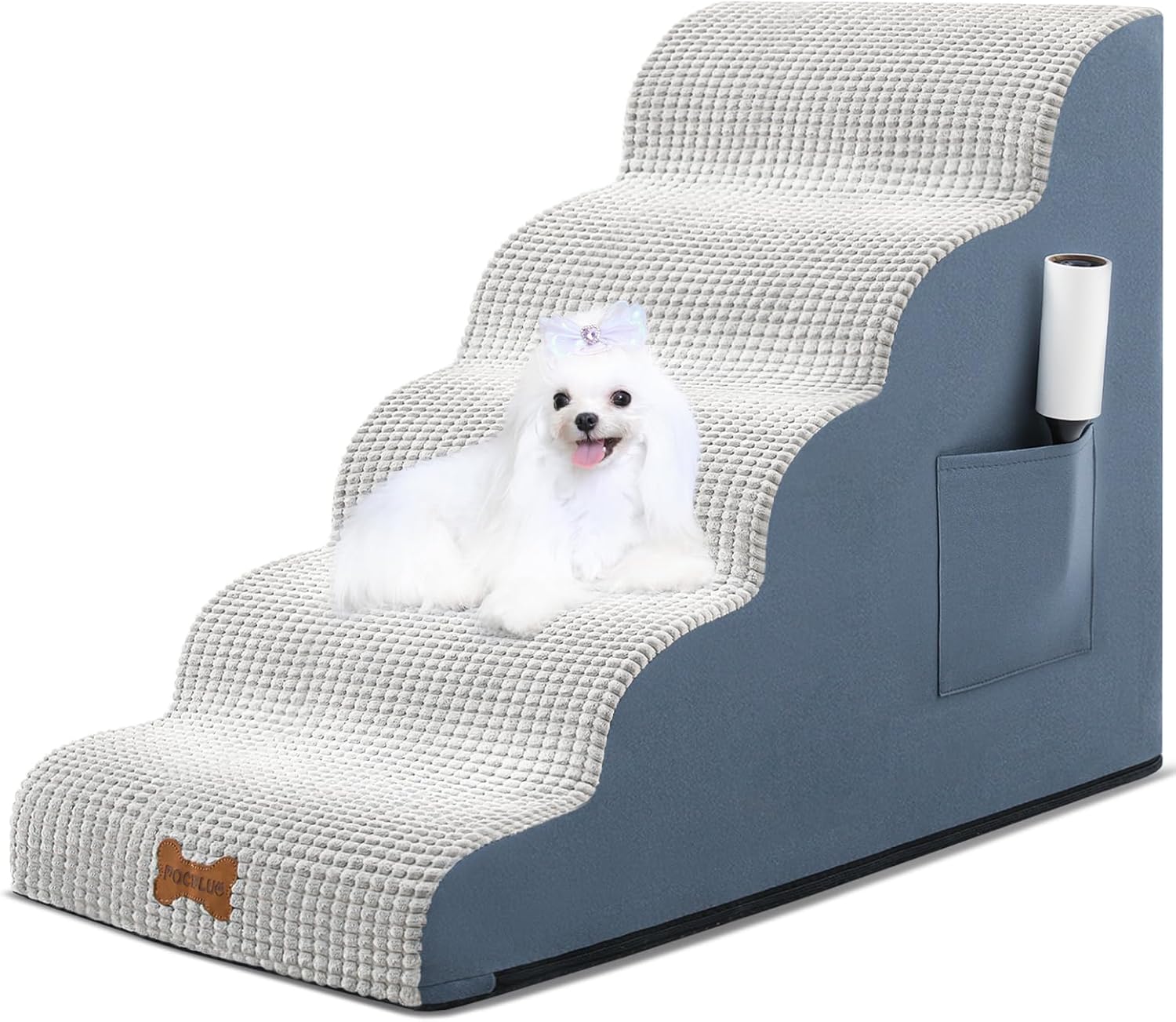 - DIFFERENT SIZE TO CHOOSE: Available in 3-step, 4-step, and 5-step options, these dog stairs are designed to accommodate pets of various sizes, making them perfect for use with couches, high beds, or cars. The steps also feature side pockets for storing your pet's small items. Plus, a pet hair removal roller is included, making it easy to keep both the stairs and your clothes free from pet hair.