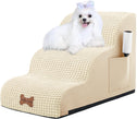 - FIRM AND NON-SLIP: These dog stairs are covered in soft coral velvet fabric with a 3D textured surface, providing extra grip for your dog's paws to prevent slipping as they climb. The bottom features a non-slip point design that keeps the stairs securely in place, ensuring stability during use. This combination of materials offers both comfort and safety, allowing your dog to climb the stairs easily and confidently without worrying about displacement.