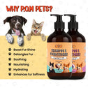 - "EASY 2-IN-1 GROOMING FOR DOGS & CATS: Simplify bath time with this convenient dog shampoo, combining cleaning and conditioning in one effective step. Perfect for busy pet parents, It works as both dog shampoo and conditioner as well as organic cat shampoo and conditioner, making it great for both dogs and cats care."