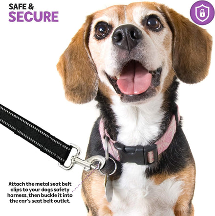 - EASY TO USE: Attach the metal seat belt clips to your dogs safety harness, then buckle it into the car's seat belt outlet. With this easy click seat belt, your dog is secure and won’t distract you during driving.