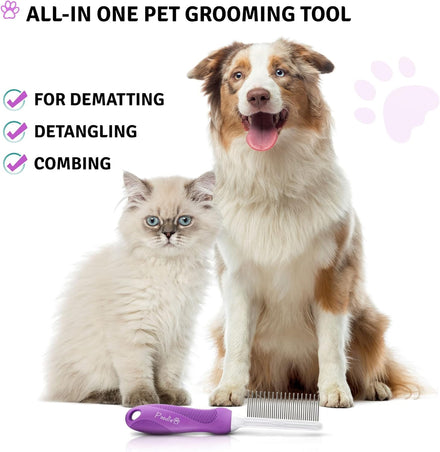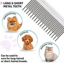 - Peine desenredante 2 en 1: simplifica el proceso de aseo utilizando nuestros peines de doble longitud para desenredar, desenredar y peinar. Cuenta con dientes de metal largos y cortos, por lo que reduce el tiempo a la mitad