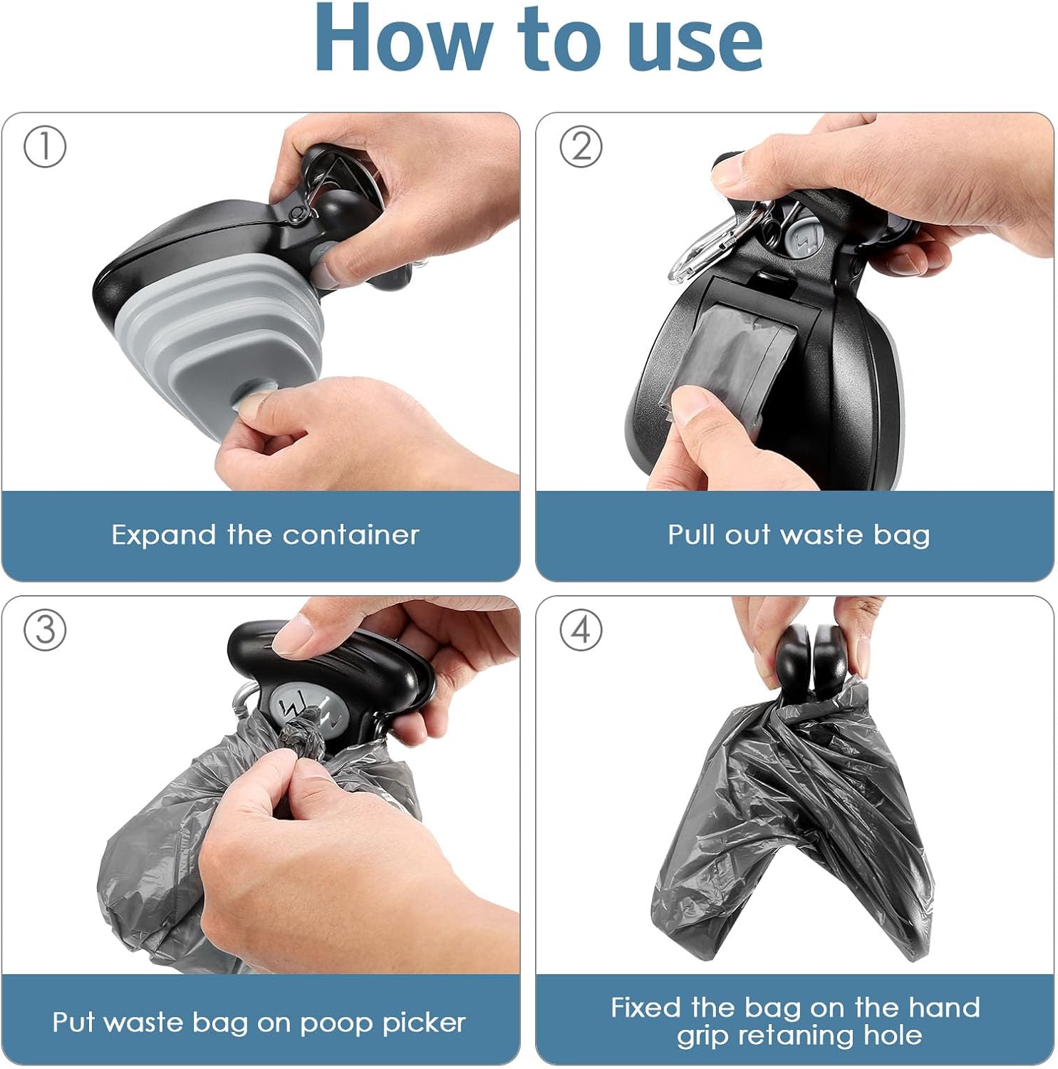 - 【With Waste Bag Compartment】: This dog poop picker upper for medium-sized dogs is cleverly designed with a waste bag compartment for easy access to waste bags on the go