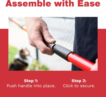Easy assembly, simple storage - Assembling the pooper scooper for medium dogs is a breeze out of the box and is as simple as a push and click. No extra tools needed! Push-pin installation adds extra durability compared to twist installation that unravels with use. Use the holes in the handle grip to store on the wall in your garage or tuck it away neatly in a backyard corner for convenient access.