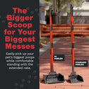 Easy to use, no more bending - Easily scoop up your dogs poop without ever having to stretch, kneel, or bend down. The long, comfortable 36+" handle on this poop scooper for dogs is the perfect length for those that want to scoop from a comfortable position.