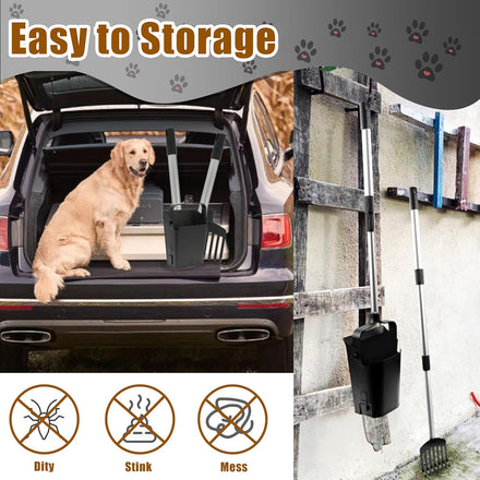 - 【No More Bending】This dog pooper scooper heavy duty has a three-section adjustable handle that extends up to 38.5 inches, making it easy to pick up pet waste and keep mess and odor away from your face, hands and nose. So many dog owners of all ages and abilities can clean up their pet’s poop and say goodbye to back pain!