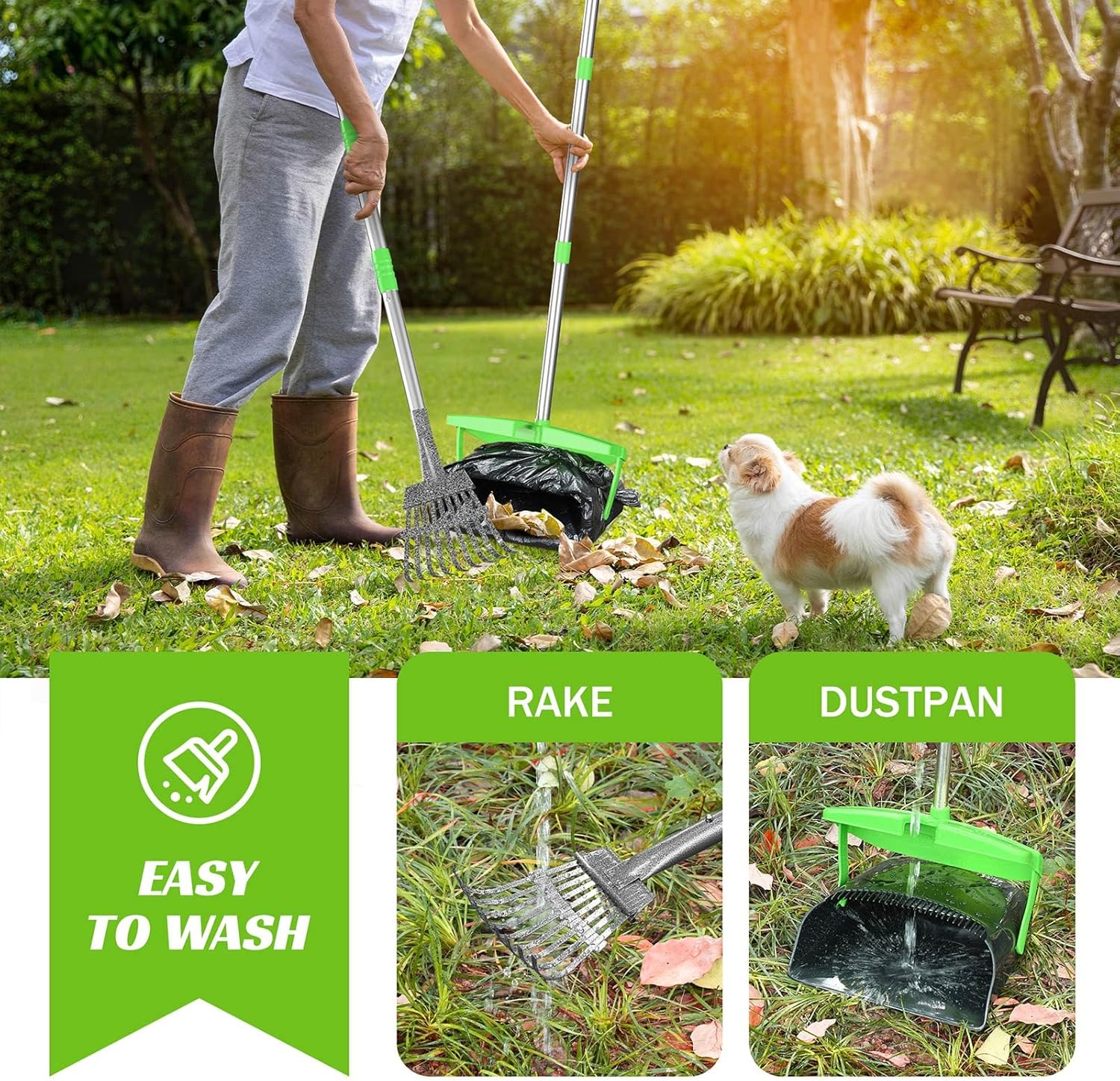 - Multi-Surface Applicable: This dog poop scoop with a rake is great for yards, perfect for a variety of waste, like garden leaves, debris, and so on, suitable for various surfaces like lawns, yards, and kennels, or even frozen snow