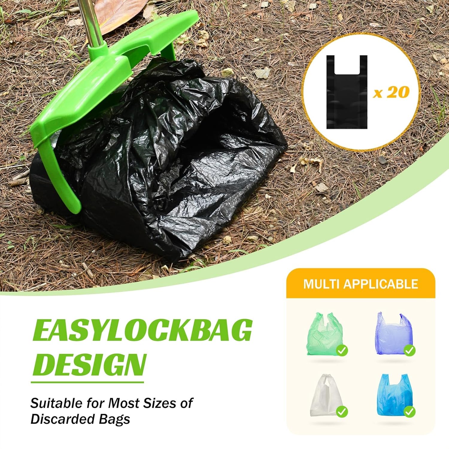 Dog Poop Picker Upper with Large Container: Spacious container for hassle-free collection and disposal of pet waste. Ideal for large dog waste