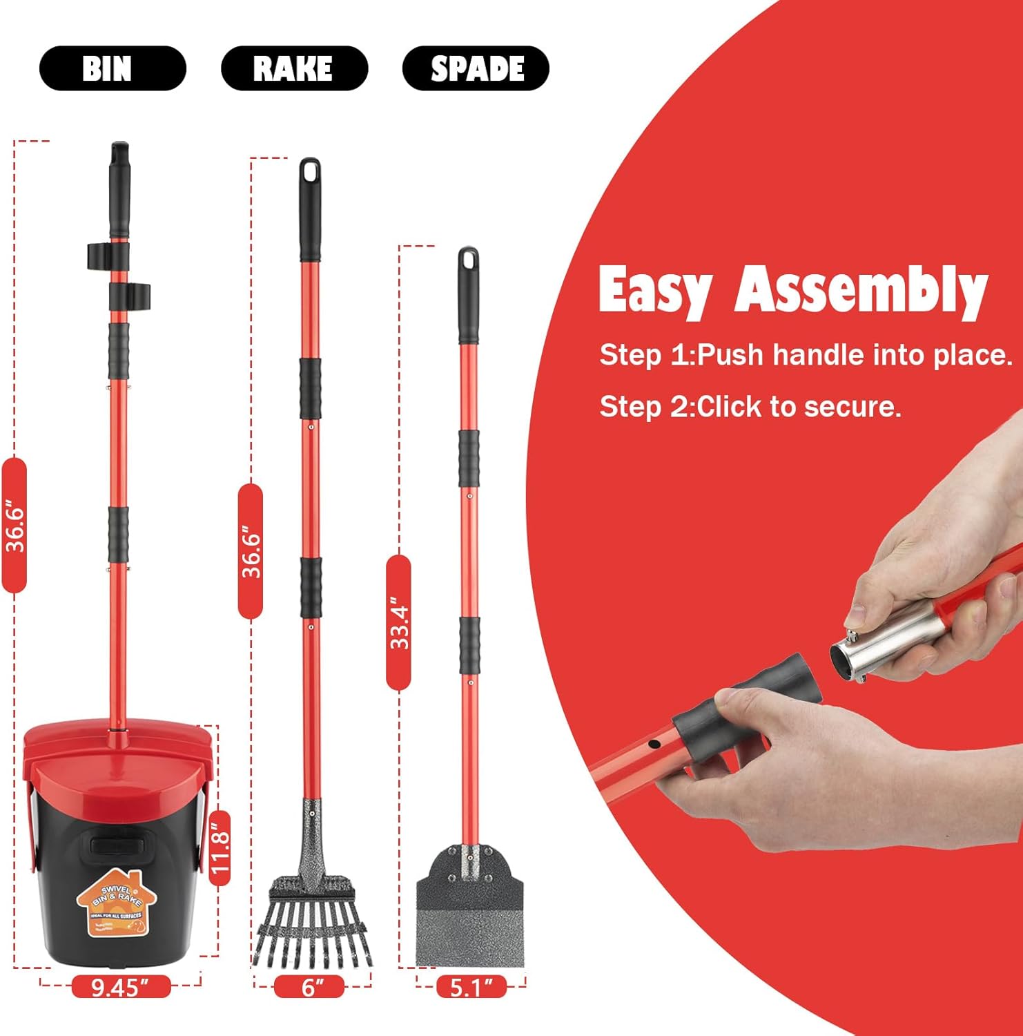 - Easy assembly, Simple Storage:Assembling the pooper scooper is a breeze out of the box and is as simple as a push and click.Aluminum handle is lighter and not rust.