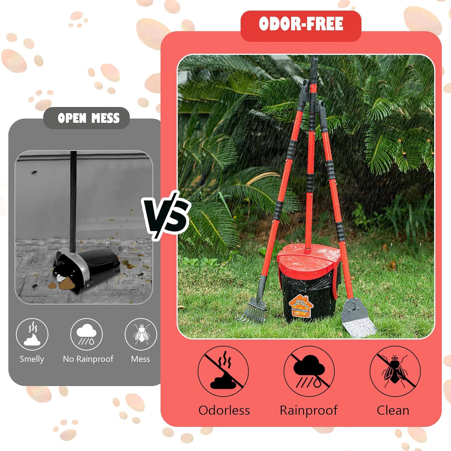 - Dog Pooper Scooper with Adjustable Handle:The lightweight handle extends up to 36 inches,No more breaking your back to bend down and scoop up dog poop with your hand and dog poop bag. Rake and then lift the pan to contain waste.