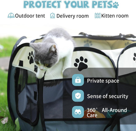 - 😺Safe & Reliable: The cat playpen is made by oxford fabric, light and durable. Through the black mesh on the top and the other 8 sides, you can see each other easily, which will put both your mind at peace. The airy ample space can also prevent you pets from feeling stifling or oppressed. A perfect place for your pets to deliver, recover or rest.