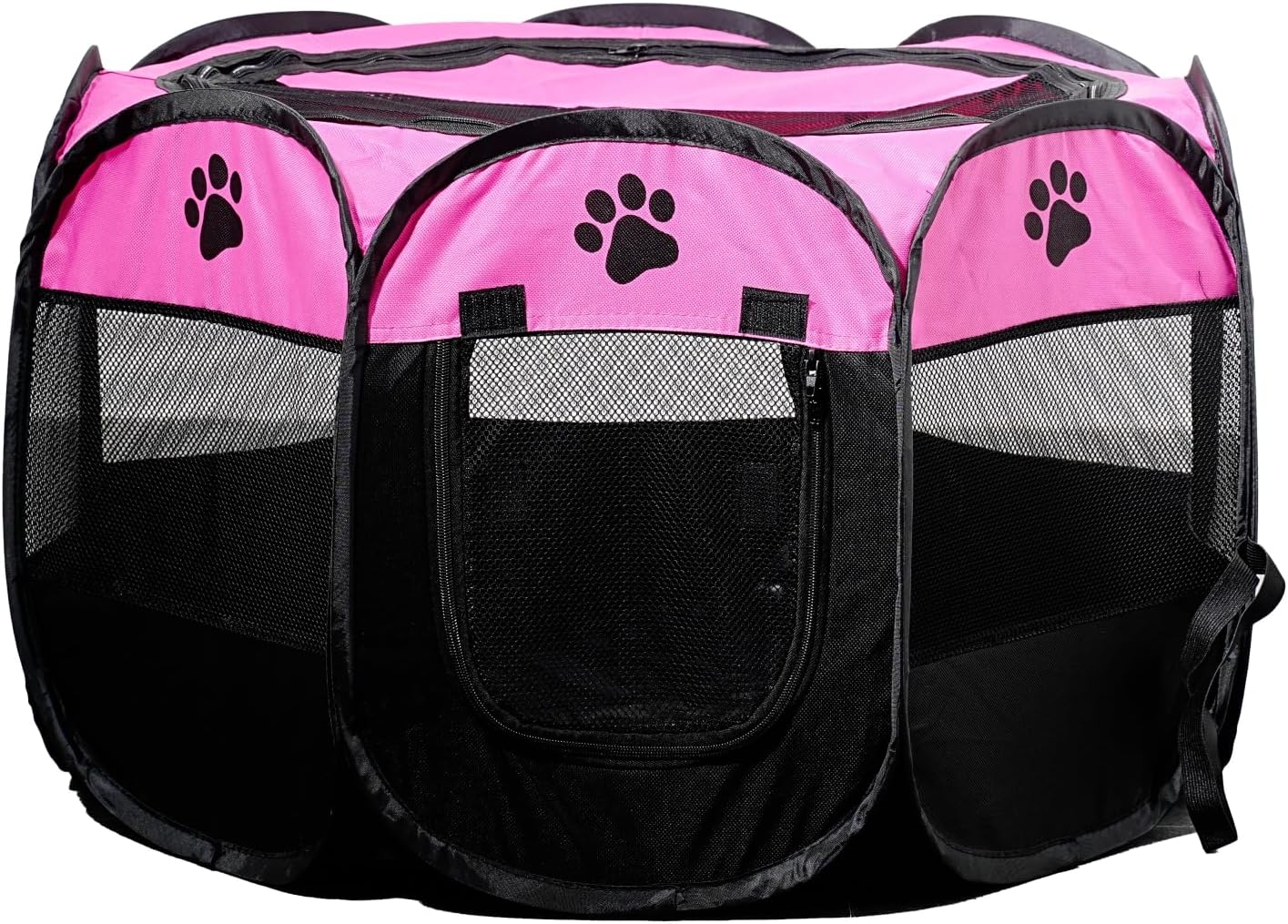 - 🐶Pop-up & Portable: Our pet tent can be rapidly unfold or fold without any assembly of metal parts. For easier carriage and storage, you can fold it up when unused. Quickly make a lounge for your tired pets after indoors/outdoors games. Besides small cats, small dogs, kittens and puppies, our cat playpen is also suitable for rabbits, ferrets and guinea pigs.