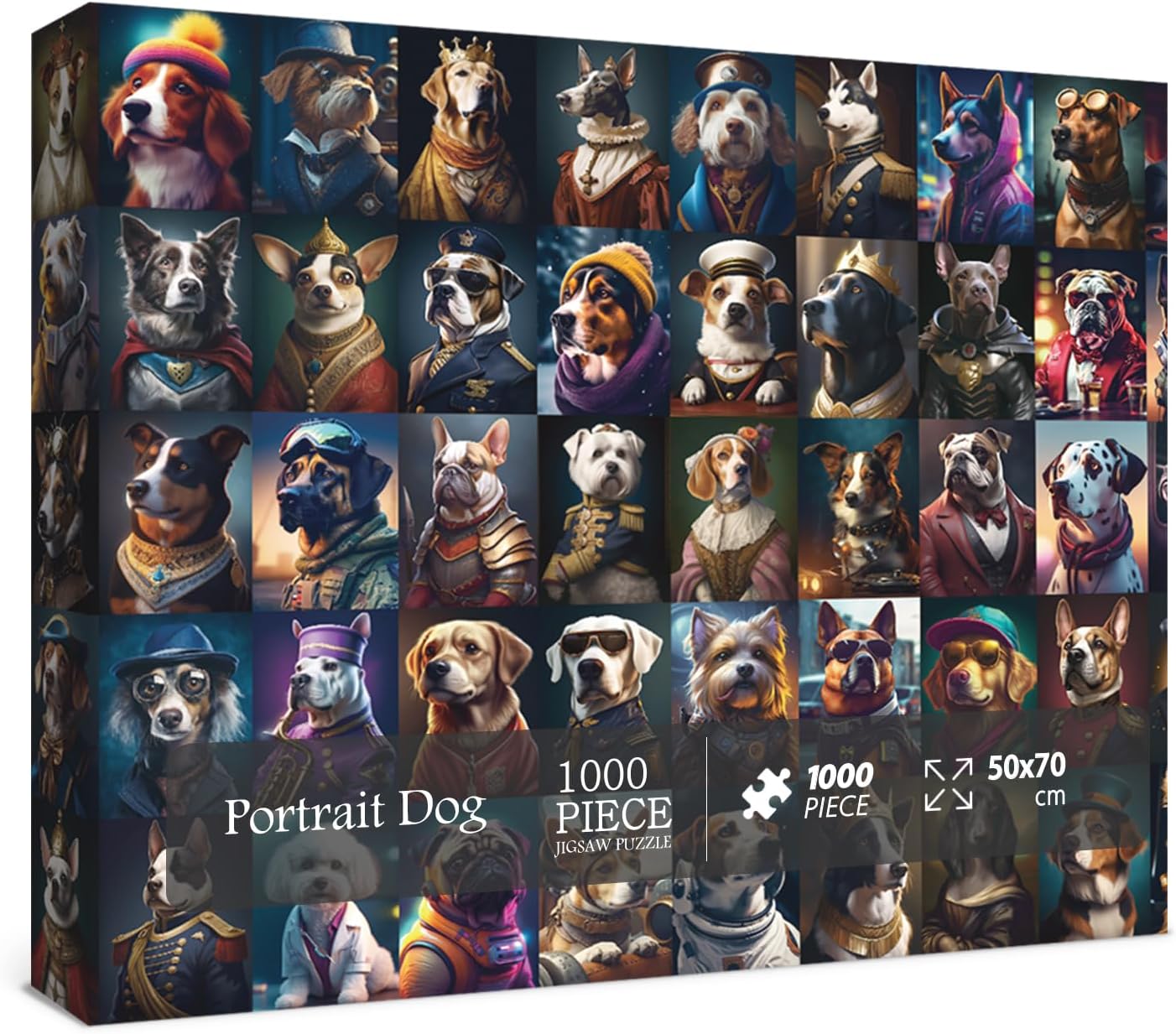 Portrait Dog Puzzle Dogs Puzzles 1000 Pieces for Adults, Animal Jigsaw Puzzles for Adults, Funny Puppy Bulldog Jigsaw Puzzle Family Collage Puzzles as Home Decor