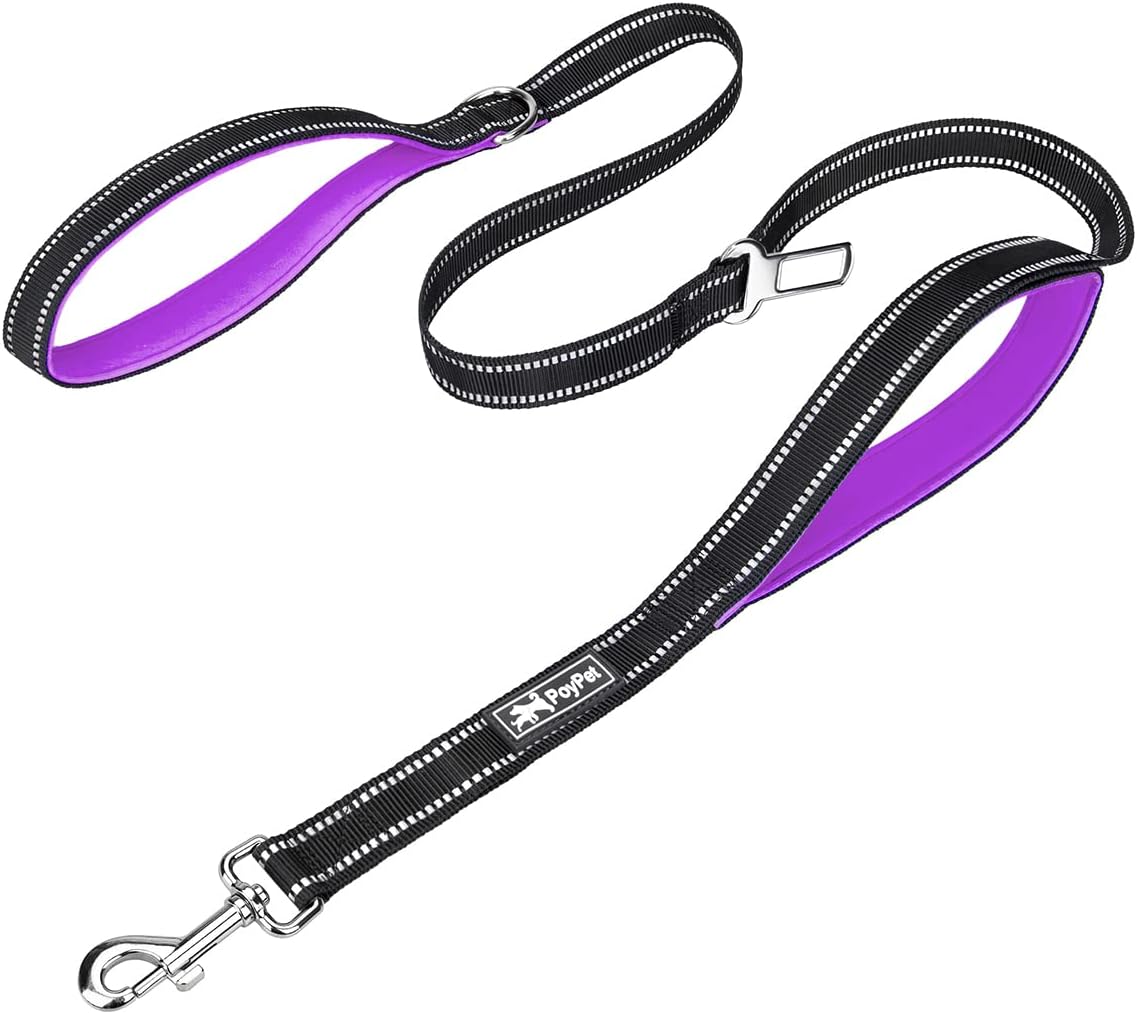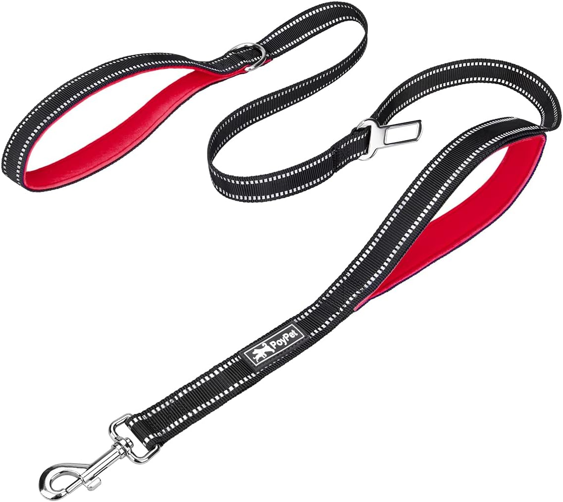 - CUSHIONED DUAL HANDLES: This dog leash has 2 cushioned handles. The top handle is giving your dog more freedom during walks, allowing extended sniffing.The shorter handle in a lower position is just in case you need more control, or in crowded situations. Both handles are padded, so there are no cut edges to scrape your hands.