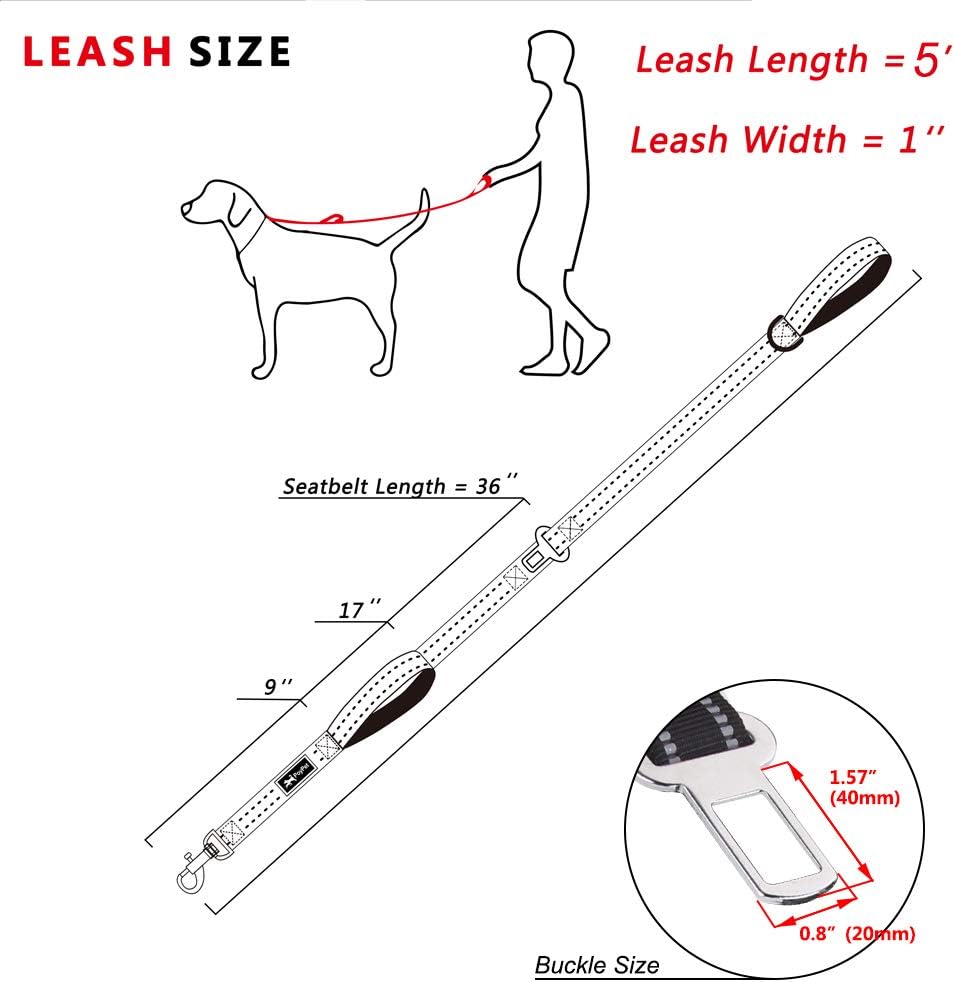 - FUNCTIONAL CAR SAFETY BUCKLE : There is a car safety clip and you just need “plug”into your seatbelt. No need carry a separate device for car rides. It will keep your dog safe when driving.