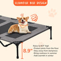 - Comfy Raised Dog Bed: Want your dog to live the high life? This cooling dog bed keeps them cool and comfy — perfect for those precious joints and a chill spot to rest after a wild play session. It’s easy for dogs of any age to hop in and out as the elevated height of the dog cot bed is 8.9 inches