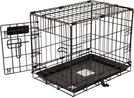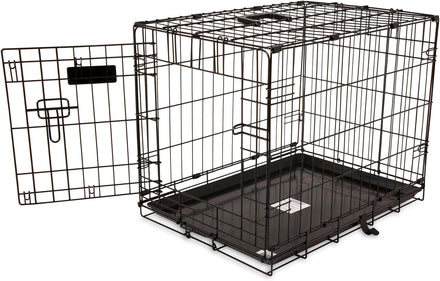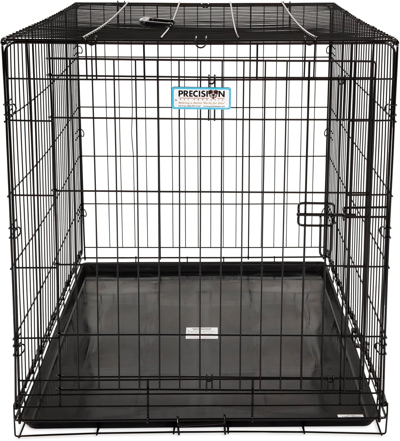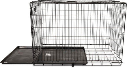 The Precision Pet Products One Door Provalue Wire Dog Crate is a reliable and durable option for crate training your large dog. Made with standard-duty wire construction, this dog crate features a rust-resistant finish, making it suitable for occasional outdoor use. The 5-point locking system provides maximum security and easy access to your pet. The rounded corners eliminate sharp edges and prevent snagging, while the non-skid rubber feet protect your floors. Measuring 42" x 28" x 30" and weighing 33 lbs, this collapsible dog crate is easy to store and transport. If in doubt, it is recommended to buy a size up. The crate is designed to grow with your dog, as it includes a durable, removable shatter-resistant pan that makes cleanup easier and a divider panel that allows you to adjust the spacious interior for a growing dog during housebreaking. This makes it a great option for crate training puppies. Crate and kennel training is essential for your dog's safety and comfort, and Petmate provides a variety of dog products to help with this, including traditional travel dog crates, wire training and exercise dog kennels, playpens, barn-style dog houses, and more.