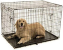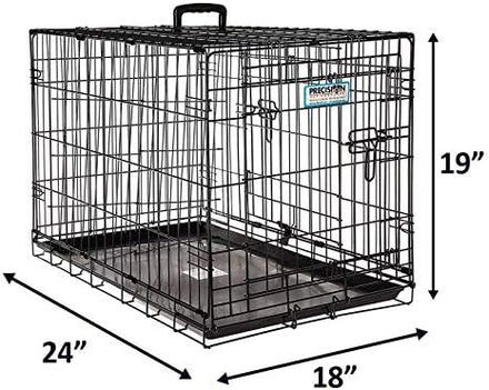 The Precision Pet Products Two Door Provalue Wire Dog Crate is a reliable and durable option for crate training your large dog. Made with standard-duty wire construction, this dog crate features a rust-resistant finish, making it suitable for occasional outdoor use. The 5-point locking system and 2 doors provide maximum security and easy access to your pet. The rounded corners eliminate sharp edges and prevent snagging, while the non-skid rubber feet protect your floors. Measuring 42" x 28" x 30" and weighing 34.4 lbs, this collapsible dog crate is easy to store and transport. If in doubt, it is recommended to buy a size up. The crate is designed to grow with your dog, as it includes a durable, removable shatter-resistant pan that makes cleanup easier and a divider panel that allows you to adjust the spacious interior for a growing dog during housebreaking. This makes it a great option for crate training puppies. Crate and kennel training is essential for your dog's safety and comfort, and Petmate provides a variety of dog products to help with this, including traditional travel dog crates, wire training and exercise dog kennels, playpens, barn-style dog houses, and more.