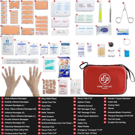 - ALWAYS READY FOR ANY EMERGENCY: With its comprehensive range of medical supplies, this first aid kit is a great ideal for families, offices, camping, hiking, boating, cars, sports, travel, road trips, the workplace, and schools. Anyone who wants to be prepared for any situation, whether it's at home or outside, should choose this mini medical kit