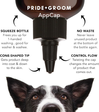 - ADVANCED DELIVERY MECHANISMS: Our cone-shaped AppCap (only available for 16oz) allows for flow control, easy one-hand washing & ensuring formula penetrates deep into coat + skin. Plus, no waste! AppCap makes sure each bottle is good to the last drop.