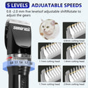 Customizable Clippers for Grooming: Adjust the clippers grooming speed to your preference with the 5-level shift feature, ranging from 0.8mm to 2.0mm. This ensures that the clippers suit various fur thicknesses, giving you precise control over the trimmer grooming process. The 4 included guard combs allow you to achieve different hair lengths, ensure a perfectly groomed appearance for your furry companions