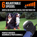 • Pet shears for large dogs: Experienced dog groomers know that the best dog clippers for thick hair aren't just about power but are a balanced hair-cutting machine kit. That’s why these pet grooming clippers have the power to handle large to extra-large dogs and horses, making them a precise and ergonomic haircut machine